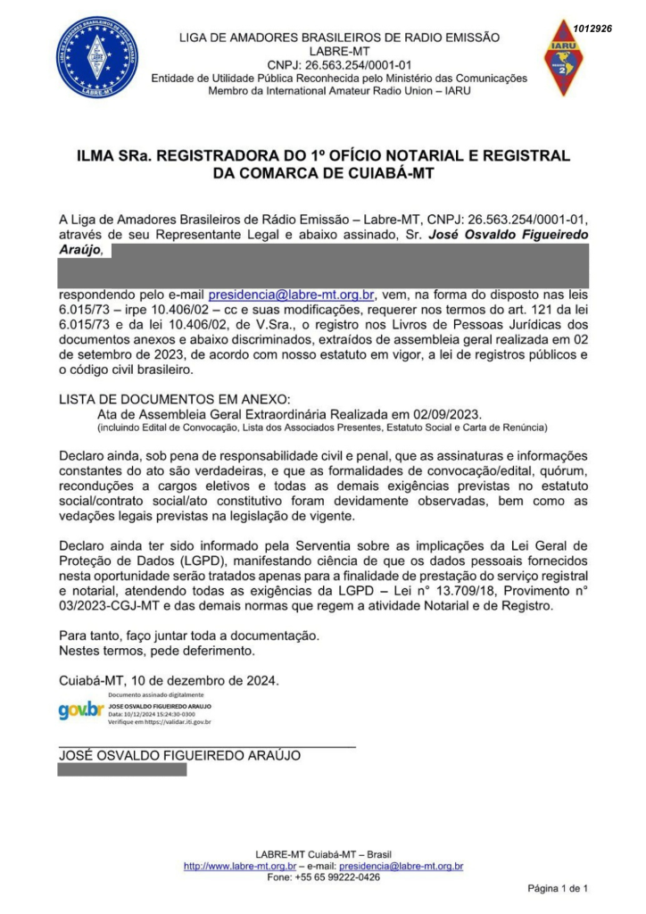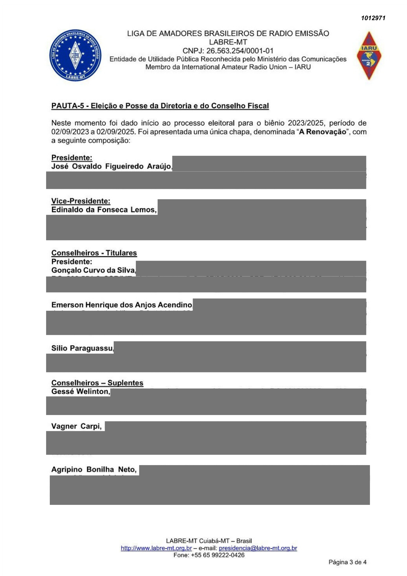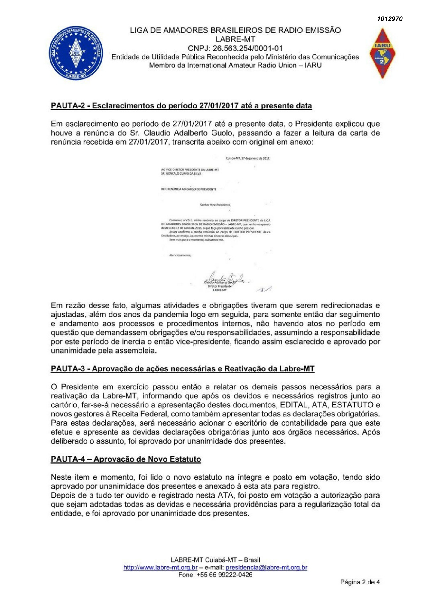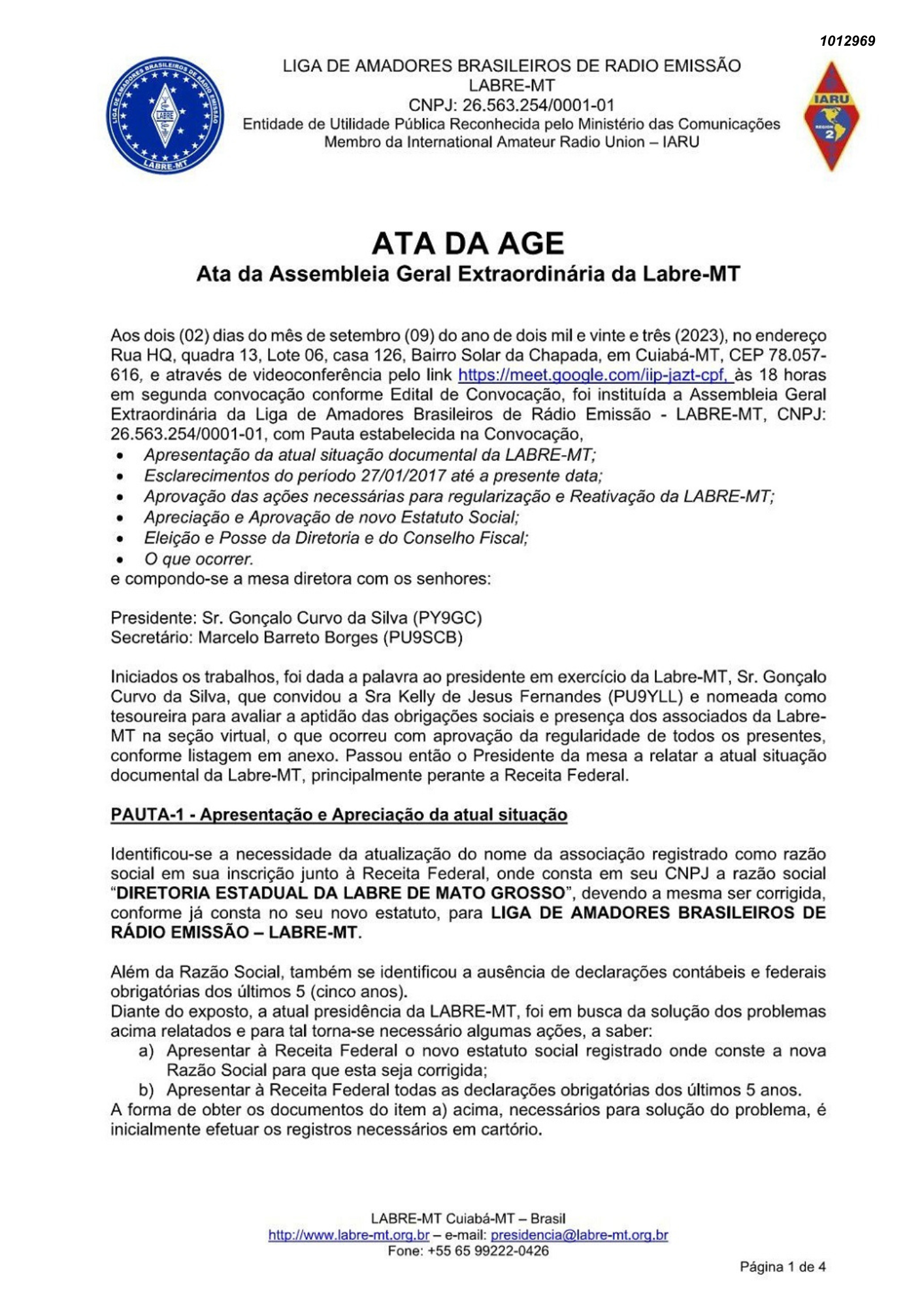 Ata da assembleia Geral Extraordínária da Labre-MT