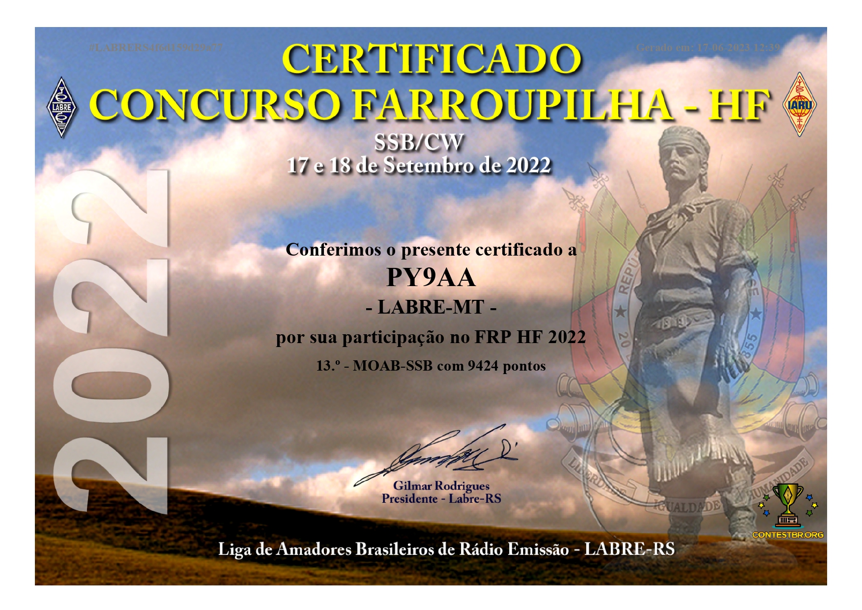 Para gerar seu certificado de participação no CONTEST FARROUPILHA, por favor, clique na imagem do (aquela com a logomarca do evento como mostrado abaixo),